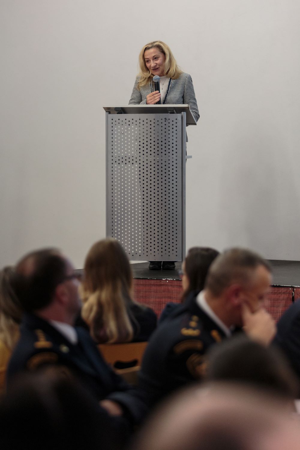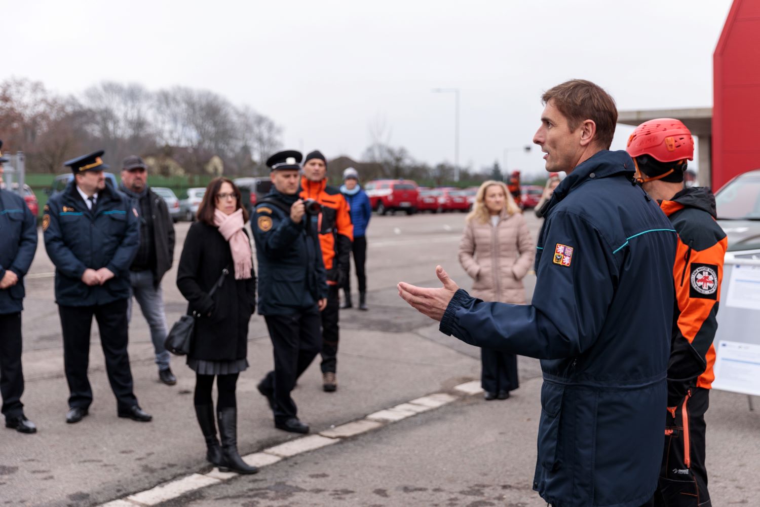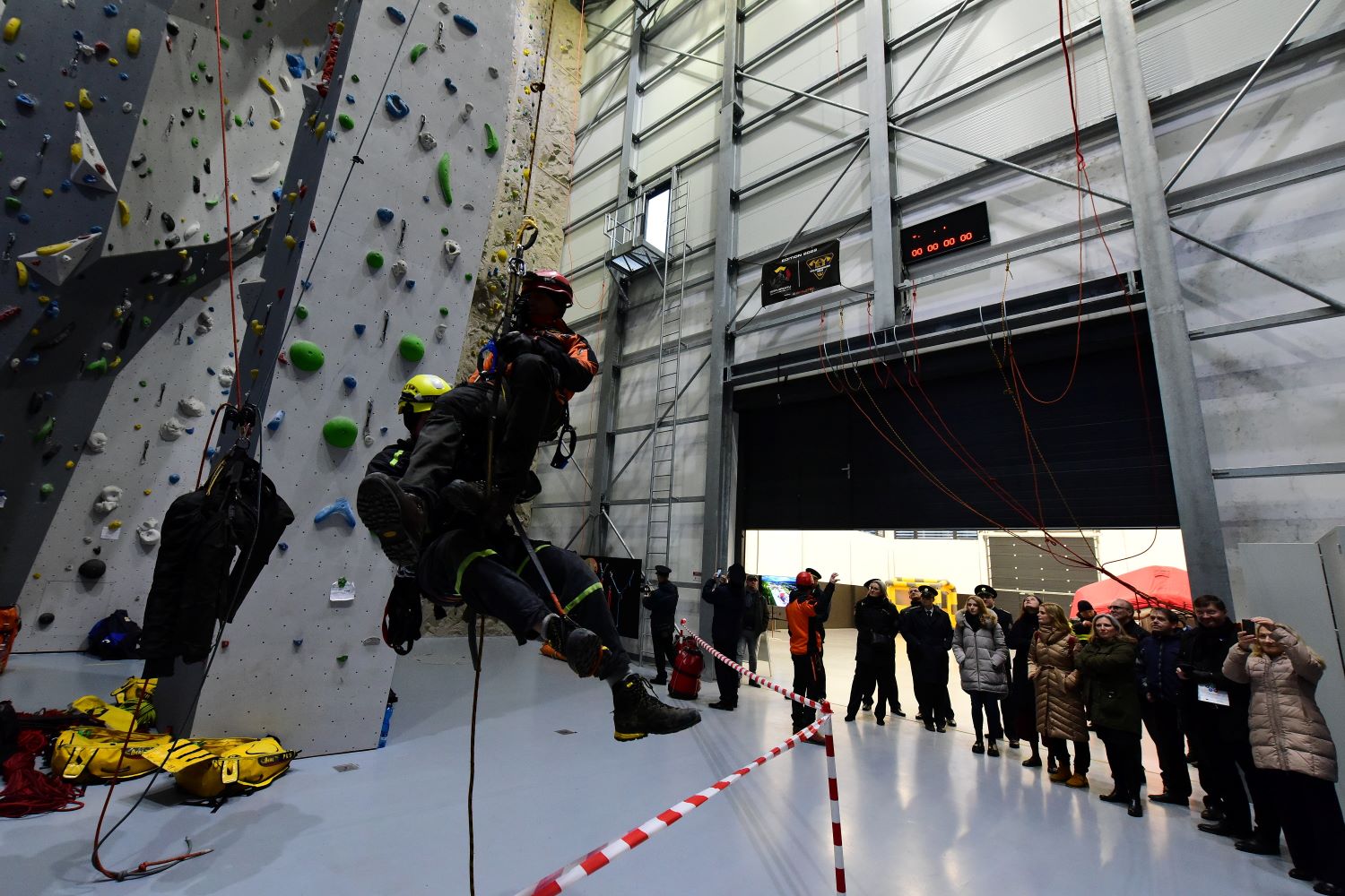 V odpolední části se účastníci přesunuli do nedalekého vzdělávacího a výcvikového střediska – Učiliště požární ochrany ve Velkém Poříčí, jehož součástí je i lezecký polygon, který byl financován z Evropské unie prostřednictvím IROP. Stavba využívá zvláštní konstrukční betonové prvky a je ojedinělá nejen v České republice, ale i v Evropě. „Měli jsme možnost navštívit vzdělávací zařízení poblíž města Grenoble ve Francii a to bylo obrovské prozření. Je tam nádherná budova zasazená do hor a tam jsme získali první inspiraci pro trenažer, který je cíleně postaven pro práci ve výšce. Odporuje to našim zvykům, kdy se pro tyto účely předělávají staré tovární haly,“ uvedl ředitel Hasičského záchranného sboru Královéhradeckého kraje plk. David Pouč.